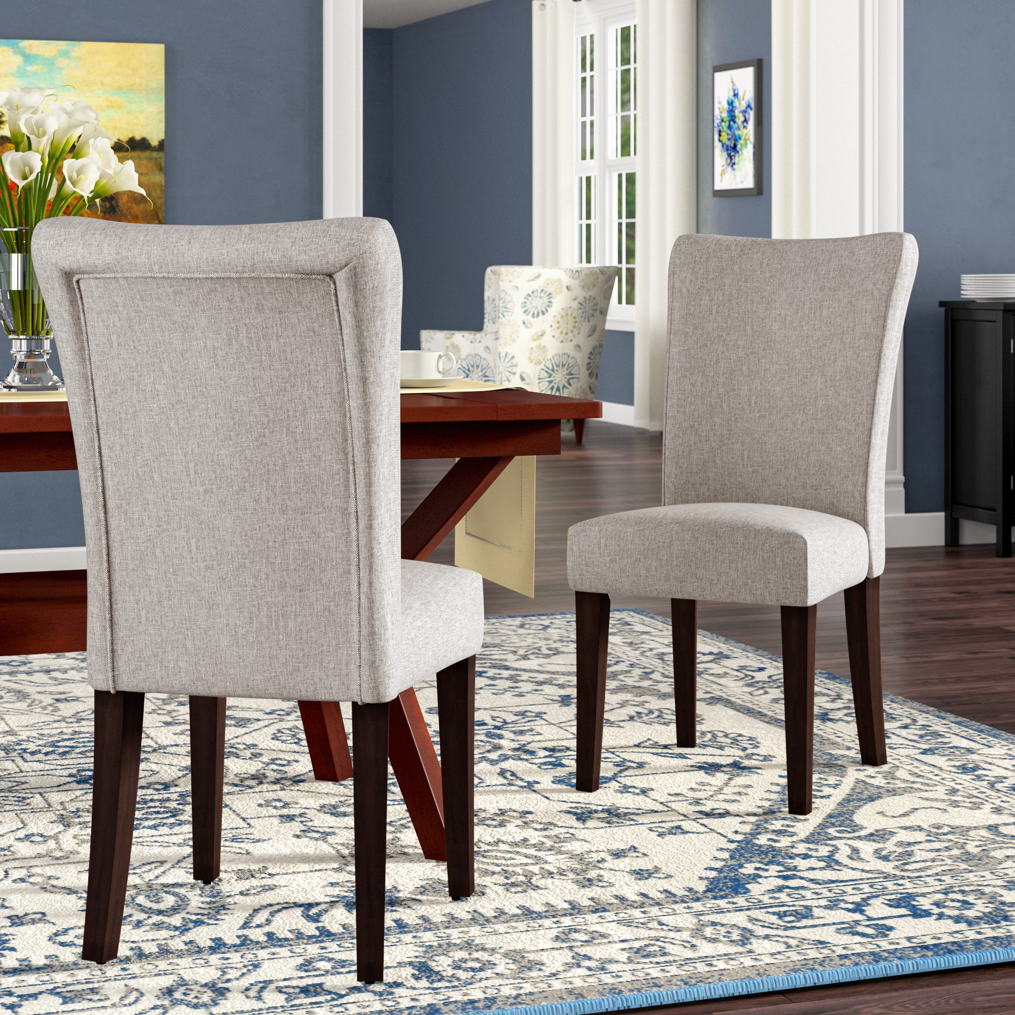 Upholstered in a rich cream fabric, this set of two dining chairs flaunts an this dining chair set features a tufted seat back, cushioned seat for comfortable seating.